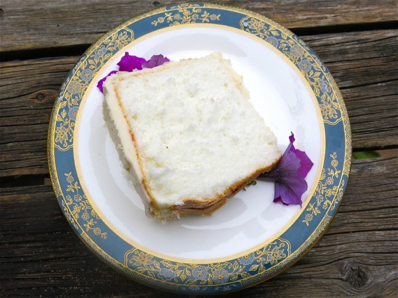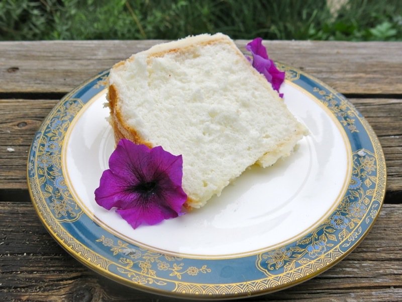 And I did see some typos when I read it in the hospital that I must correct asap… no wifi there, so it is hard to do much. It is a great story, isn’t it? So much in one light, lively and lovely cake. And the photos show how gorgeous the texture of the cake is. Some people say that they cannot tell the difference between a mix and the real thing… but that is until they have had the real thing. One of my colleagues ranted on about that one year, so we had a taste off: a store bought angel food, and angel food made with a mix, and my homemade angel food. That was the end of the discussion. There is absolutely no comparison.