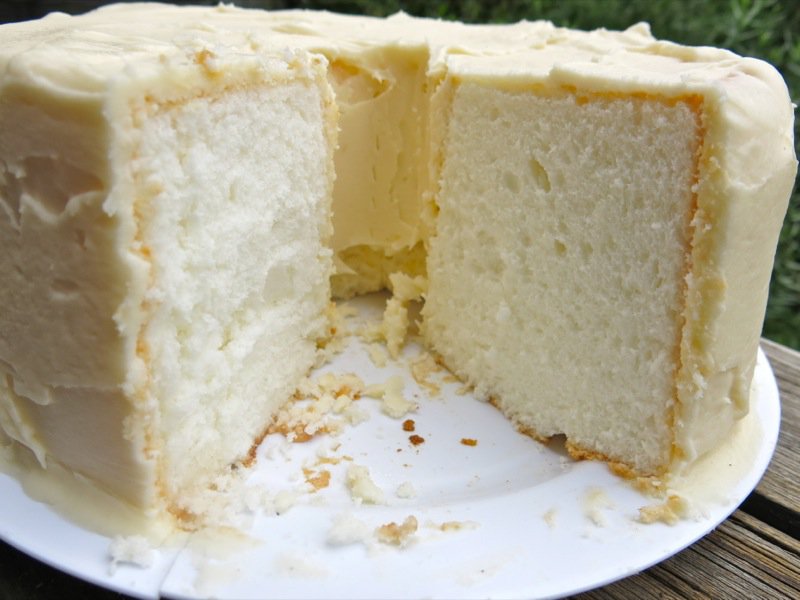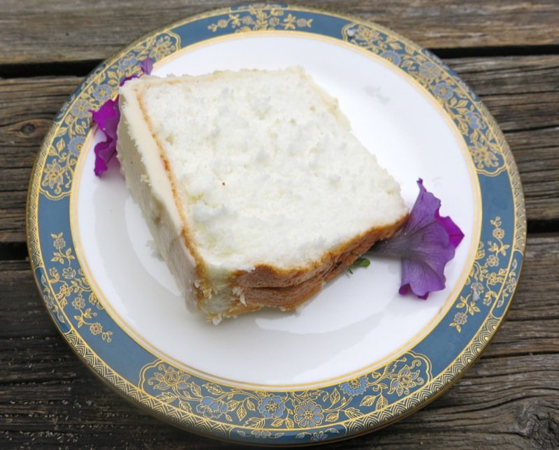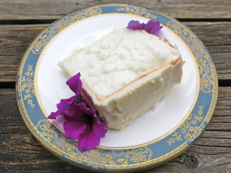 We washed our hands and sat up on the kitchen table that was carried outside for the party, waiting while the cake was sliced and served, hoping to get a lot of candy on the icing. Some moms would put money in the cake wrapped in wax paper. Mom did it once, too. I never got the quarter, but got a nickle twice! No one ate the angel food cake, but me. The candy was picked off of the icing, but it was the chocolate cake that was snorfled up and all over everyone’s nice clothes when their parents came to pick them up at the end of the afternoon. The older kids got ice cream with their cake. I remember that rite of passage very well. Chocolate cake is actually better with ice cream than angel food cake. Angel food cake is perfect on its own.