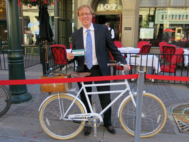 A little goody that the City of Calgary’s Downtown Business Association provided to dinner guests was a Downtown Parking Coupon. Apparently, these are incredibly rare and coveted little treasures. You can see that Fraser Abbot (owner of Hotel Arts, Senior Director of Marketing with the Calgary Hotel Association, and our newly appointed Vice Chair at Alberta Culinary Tourism Alliance) holds this little ditty in high esteem as he redeems it to park his preferred mode of transportation very close to our dinner table.