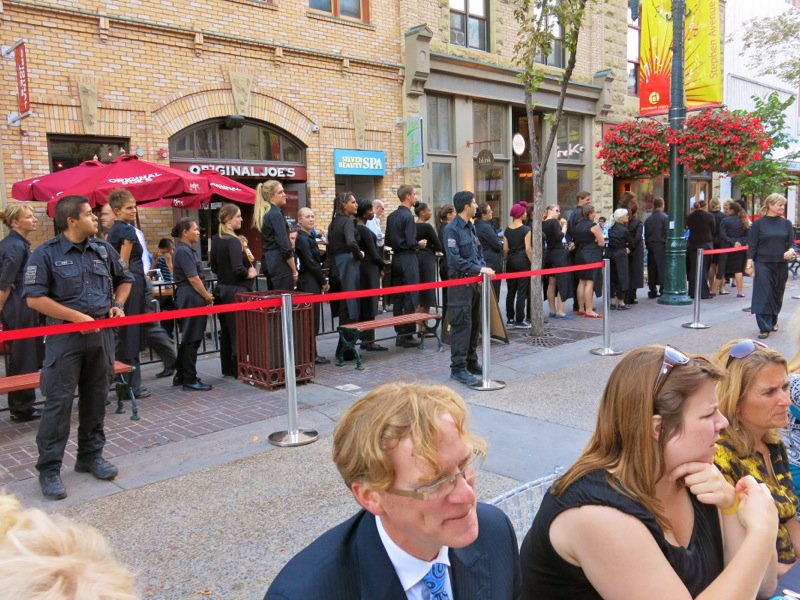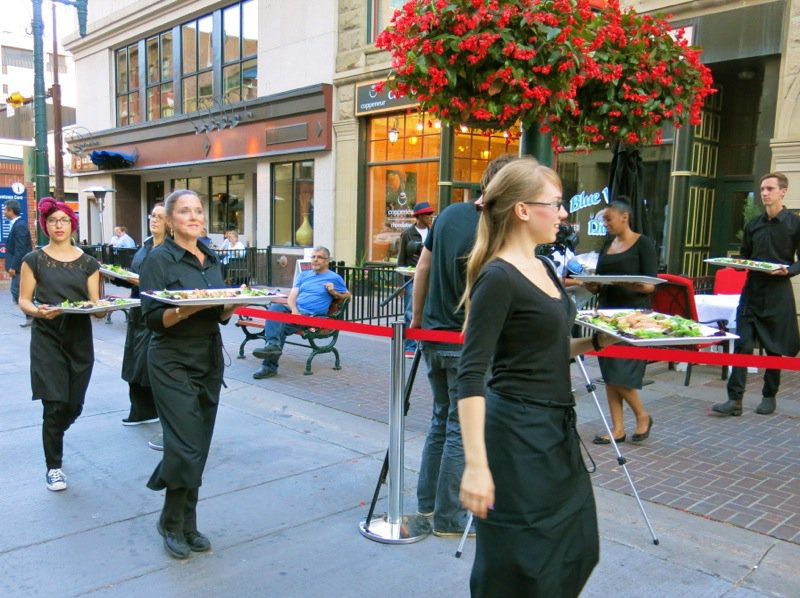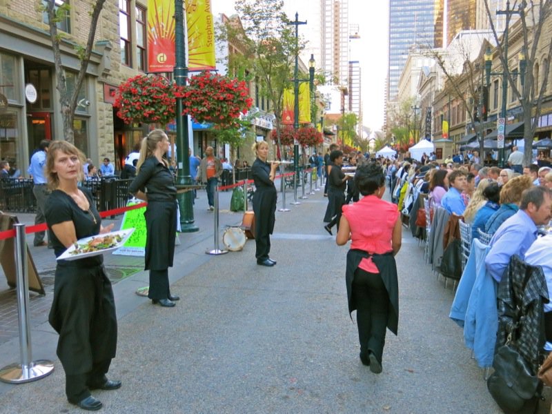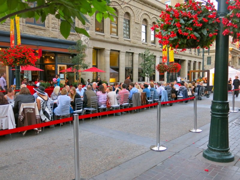 Stephen Avenue in downtown Calgary is a pedestrian only street for a few blocks until 6 pm every evening. This particular block along the avenue is lined with several outstanding independent restaurants which participated in the event. Some of the restaurants were not so near. Washroom facilities were stunning as the restaurants participating also offered the use of their full facilities. The area was blocked off with red rope and several Calgary Police officers were also milling about, making their presence known in their approachable black Stetsons.