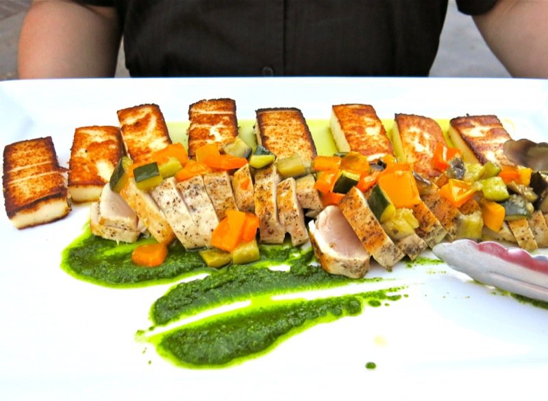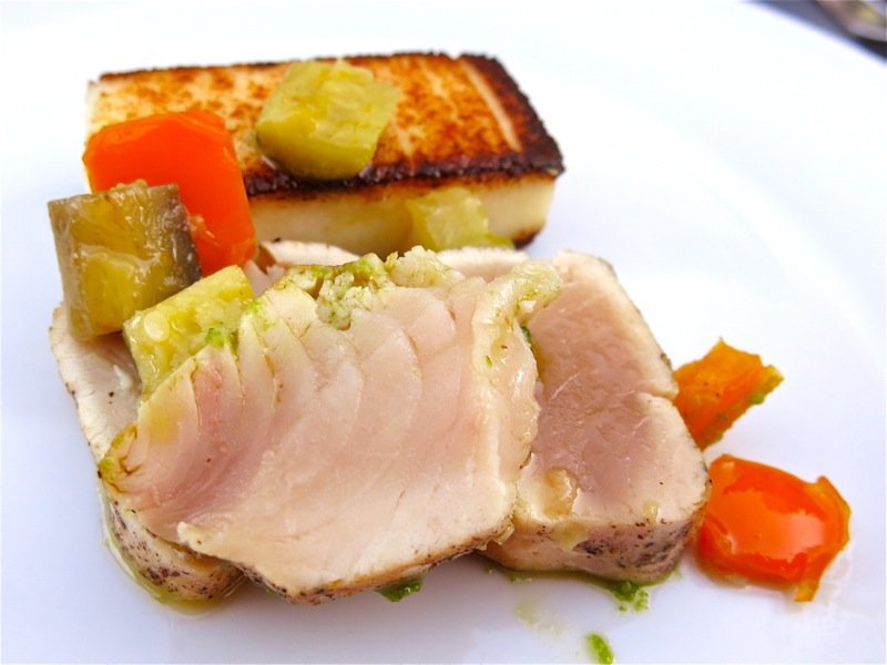 Course Five was from Blink: (Executive Chef Chris Dewling) perfectly seared delicate British Columbia Albacore Tuna with a sumptuous Vegetable Ratatouille and crisp pillowy Parmesan Polenta. The polenta paired with the pesto was deadly. I was not hungry. I was lapping it up.