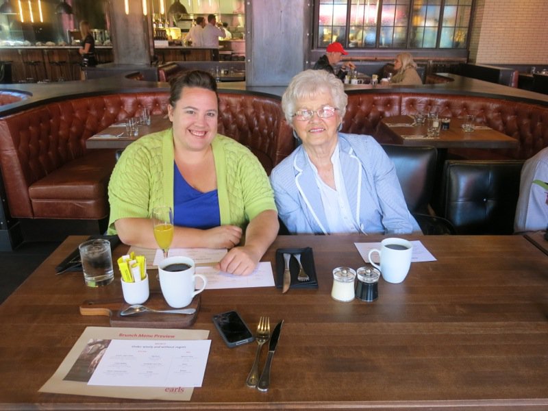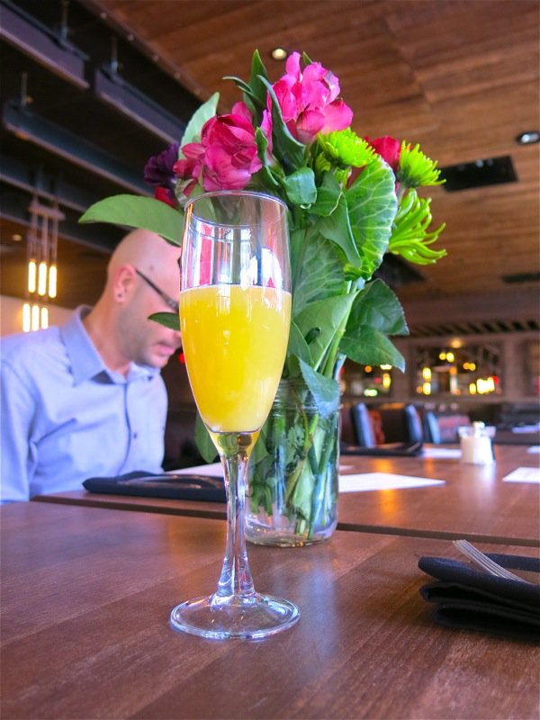 A brief reprieve last Sunday, with mom and Ragan, (from taking care of dad at the hospital) for Brunch at my one favourite local “it started here in Edmonton” chain restaurant, Earls at the old Tin Palace location on 119th Street and Jasper Avenue, the Mimosas hit the spot. The “always fresh and fragrant Earls floral bouquets” juxtapose the rustic upscale setting with a stately splendor that I really appreciate when going out for brunch on a Sunday morning.