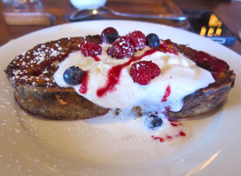 This is a bread you can sink your teeth into and chew. It doesn’t dissolve on your tongue. This is a bread that pushes back and plays with you a little which is an unexpected pleasure that one usually only experiences when eating homemade french toast – at home. This is a satisfying, not sweet, very healthy tasting dish that is definitely that one item on the menu sure to please all.