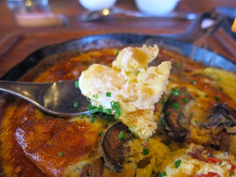 The mushroom, goat cheese and grape tomato frittata was my favourite. I adore tomatoes and this sizzling eggy concoction was complimented with intensely flavoured roasted tomatoes amid oozing pockets of salty chevre and earthy little mushroom tidbits. Mmmm. Every bite was novel and kept me digging for the next taste experience. This is a “good for you” vegetarian choice. Did I say… mmmmm?