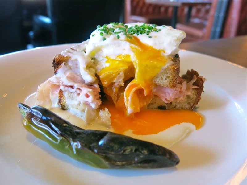 The signature cinnamon bun is served warm to every brunch customer shortly after arrival to enjoy while perusing the menu. What a palate tease. It is the bakers take on a kind of brioche bun and a really lovely fragrant warm good morning welcome.