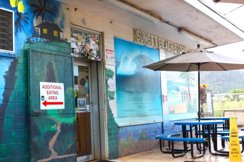 Really, this is very “funny” as it depicted the food experience we had had all over the island, for the most part. Read the ingredients. Convenience food that is industrially made with a host of ingredients one can barely pronounce derived from a famous, house made pie from this iconic Sunset Beach surfer’s spot. What a shame. And, yup. It was good. But it didn’t feel good eating it, knowing what was in it. Why cater to the masses? Why not just make what you can bake and keep the original integrity of the place? In many ways, that is still there. Take a closer look at the inside photos, above. The casual honor system with the coffee is still there. It is still a little unpretentious spot with a whole lotta history that has taken place inside of its walls and across the street on the beach.