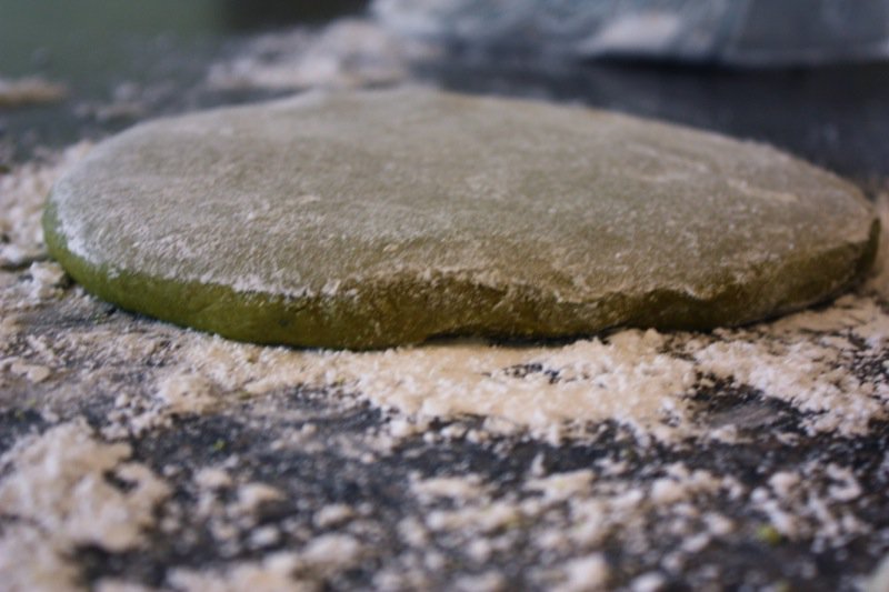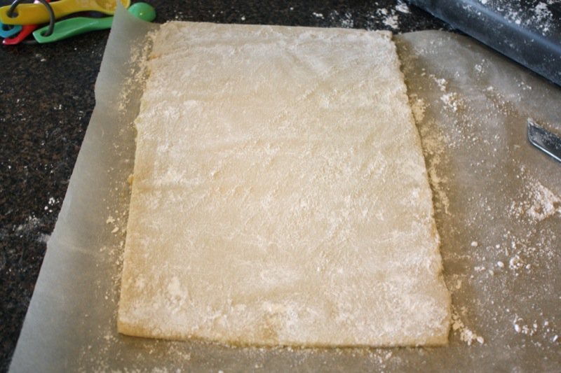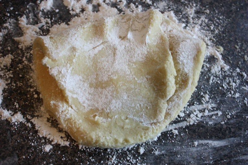 - Lightly sprinkle powdered sugar on a flat surface and on hands