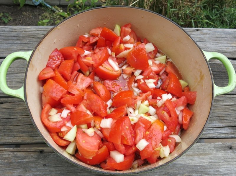 I cut the tomatoes in chunks because I like chunky textured preserves.