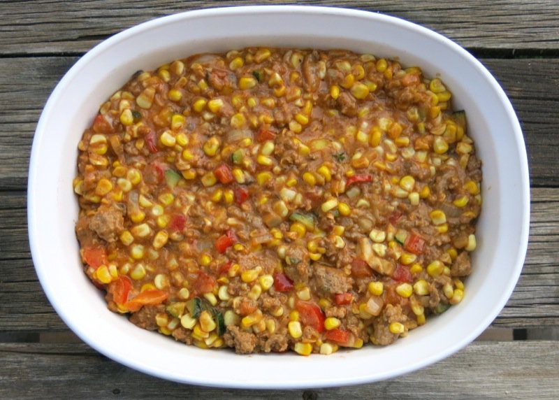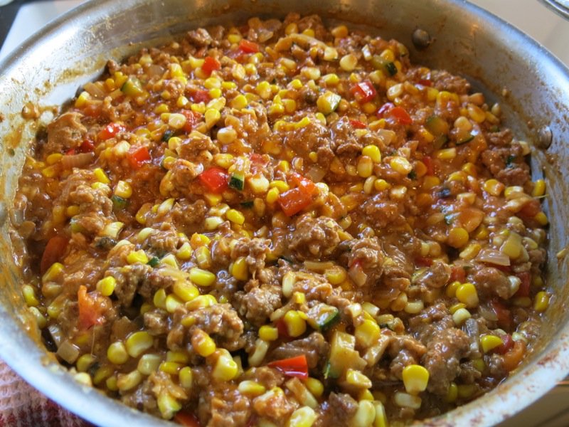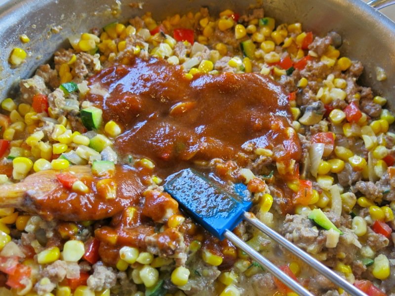 - Combine the corn mixture with the meat mixture; add the one cup of homemade ketchup (or oven roasted fresh tomatoes)