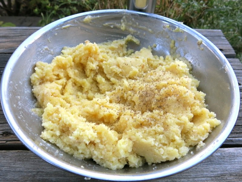 - Drain the potatoes in a colander; cool to touch and rice, one at a time