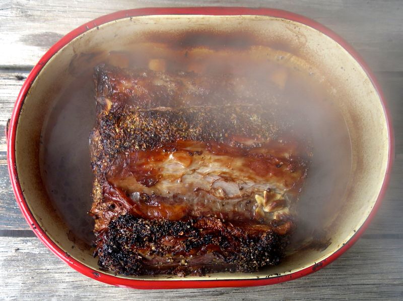 Below, I have turned the ribs over. So easy to carve the roast as well as to carve and serve the bones.