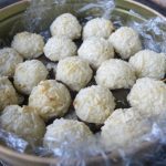 -excess liquid will pool at bottom of each ball; roll by hand, leaving puddle on cookie sheet and replace parchment paper before baking