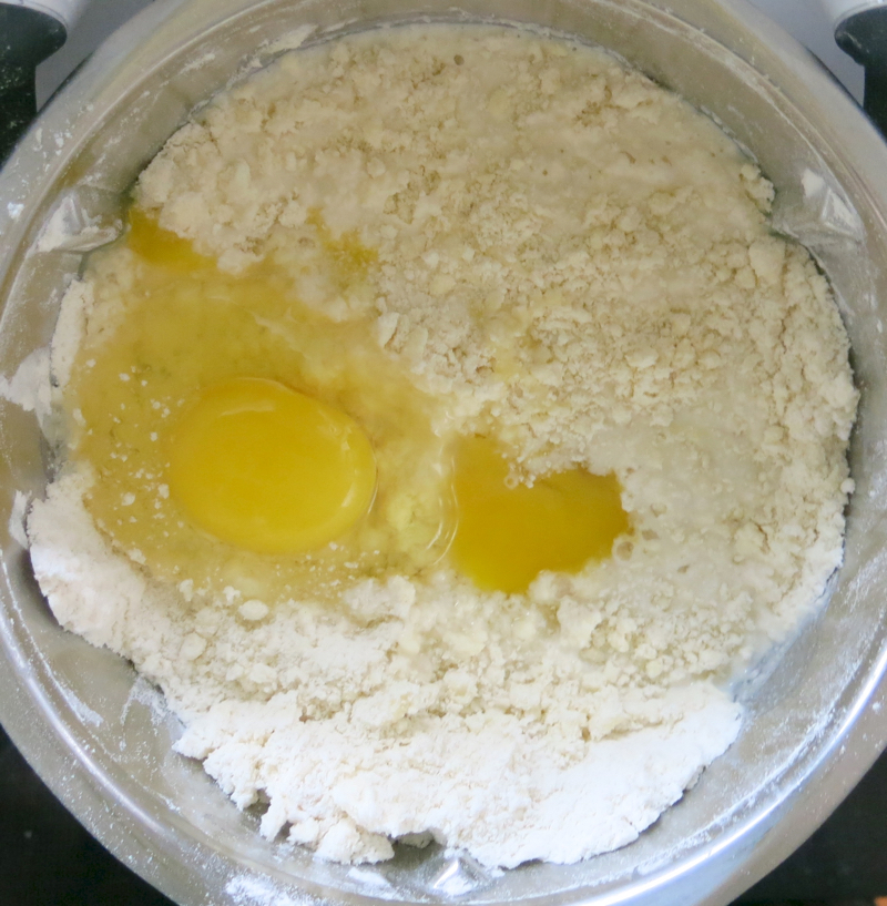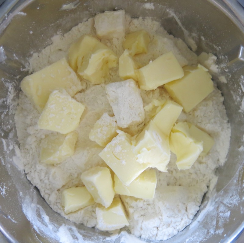 Everything I make, I make in my Thermomix. I have one. It is much easier, but instructions for making with one and without one are in the recipe, below. Cold butter and dry ingredients in and whiz until mealy textured.