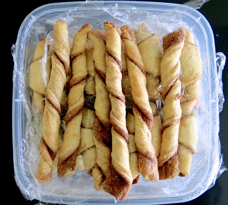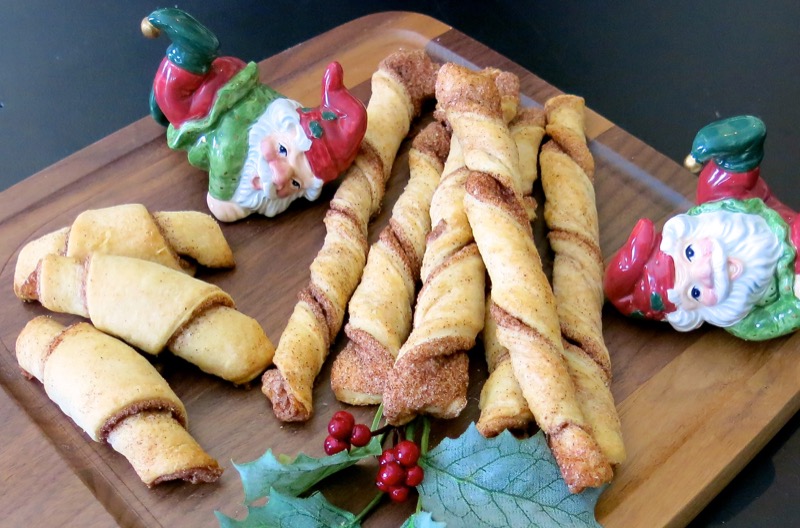 When I got home, I did some research. There was so much information on these lovely little “cinnamon toast” type pastries that I was busy for a bit. The same recipe can be made into cinnamon twists, which I did with a portion of my batch, out of curiosity. But there isn’t any “origin” information, other than they are one of the oldest recipes known that has survived through to the modern era. Likely as they are a holiday recipe, very simple to make and loved by all.