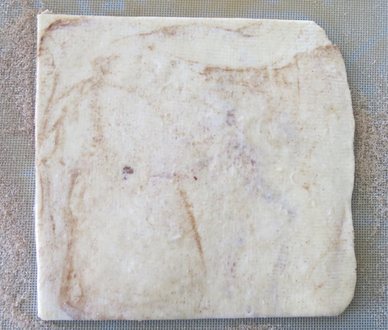 The last disc of dough was the first disc I had used when I placed both sides of the dough into the cinnamon sugar. I simply folded the dough back into itself and chilled it again, deciding this would be the disc I would use to make the cinnamon sticks. Instead of a round, roll the dough into a square, and trim it.