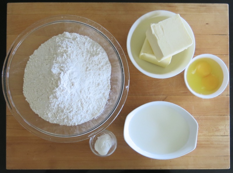 Mis en place for the dough, above. Simple and supple. This is really a beautiful dough. I will add that Liz never makes one batch. One batch makes 64 nice sized little Scuffles. I would say three is a serving. Why? Each of us managed to snorfle down three at Bridge!