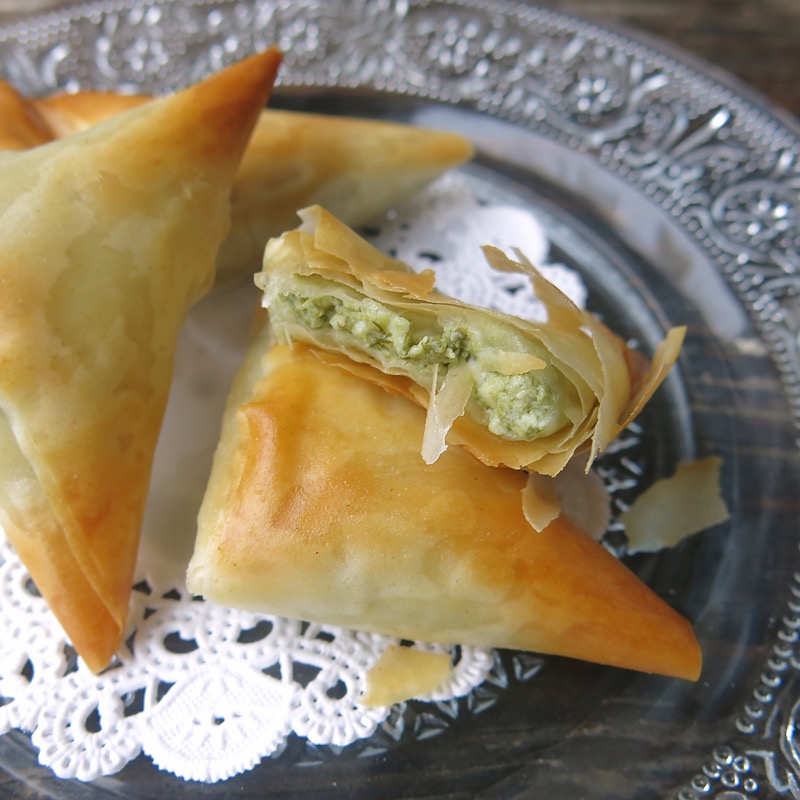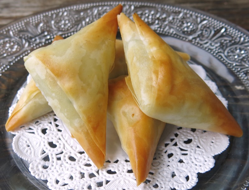 Phyllo triangles, folded like one folds the flag, present an incredible