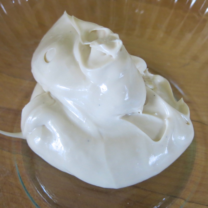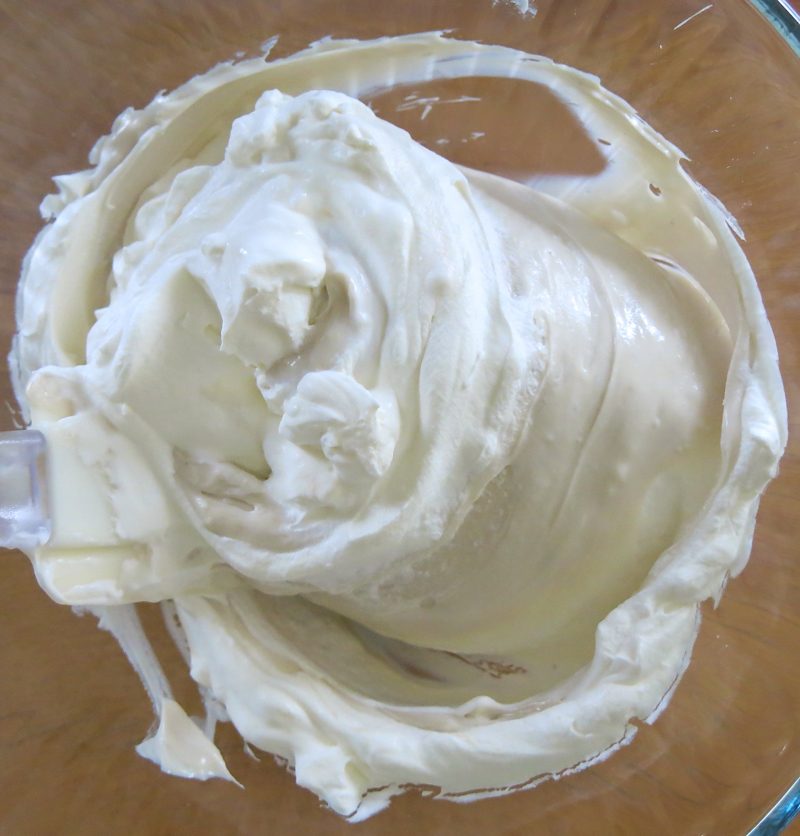 Stiffly whipped cream gently folded into cheesy concoction until fully incorporated to make a lovely light rich creamy shortbread tart filling.