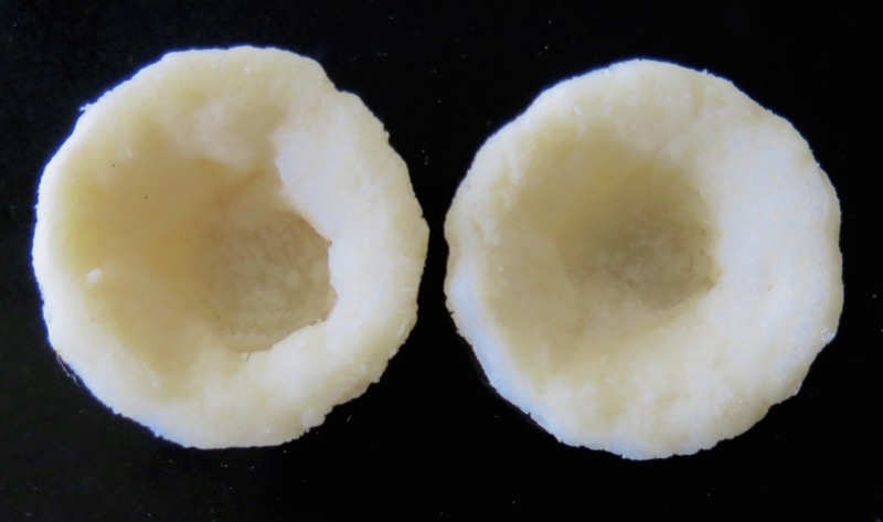- Arrange tart shells in a row side by side; carefully place a small dollop of filling in each shell
