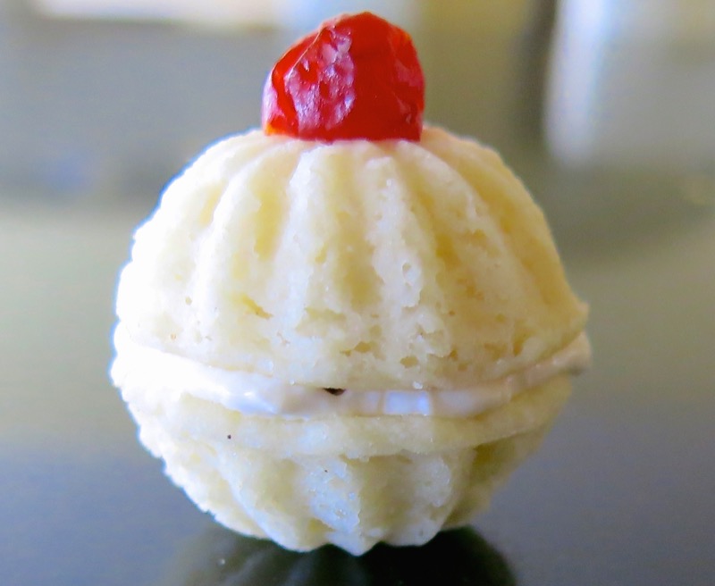The Sour Cherry Ball Tart is an ACF original creation. The show stopper on your Christmas Cookie Platter where the shortbread tart ball encases a rich creamy filling with a tart preserved cherry inside!