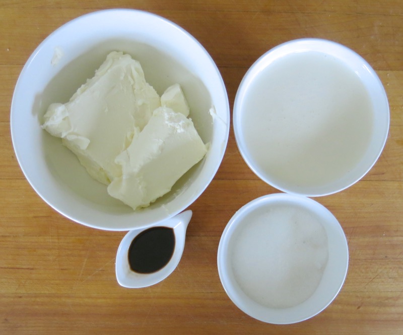 - Combine sugar, room temperature cream cheese and vanilla together with electric mixer until silky smooth