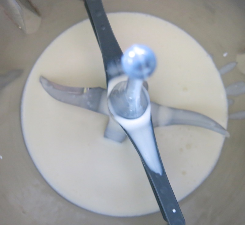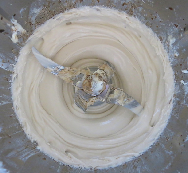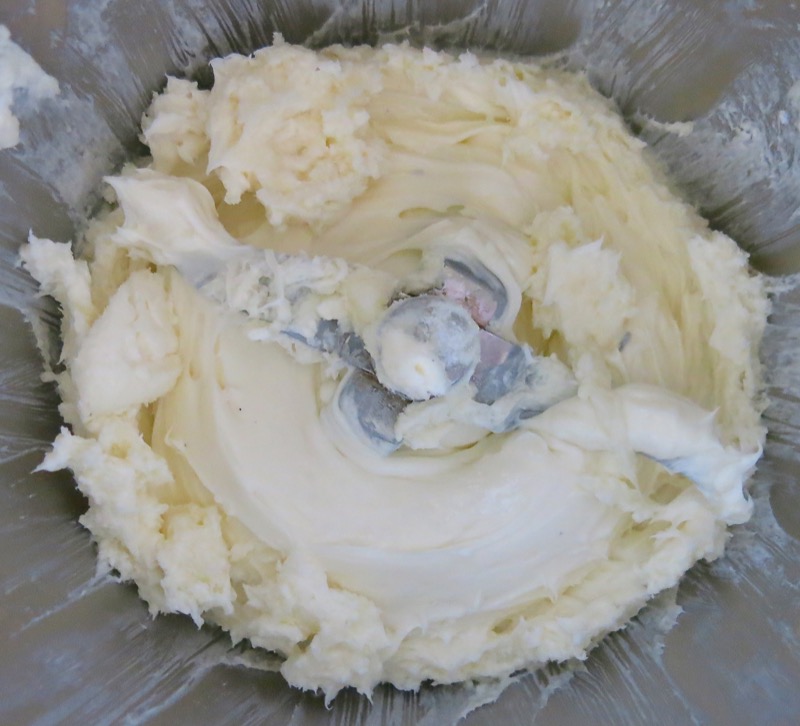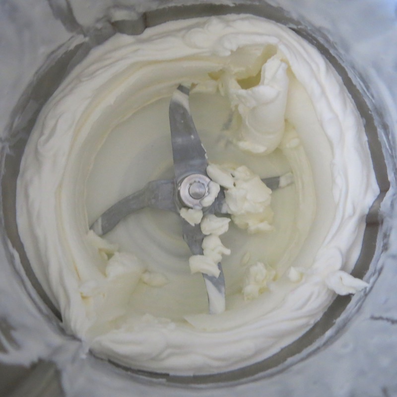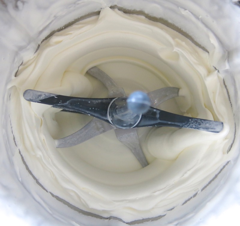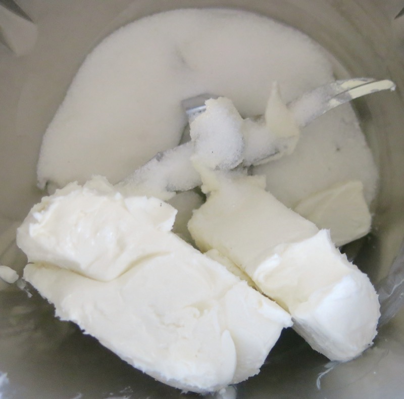 Without cleaning the TM bowl, the cream cheese and sugar are whipped together with the vanilla.