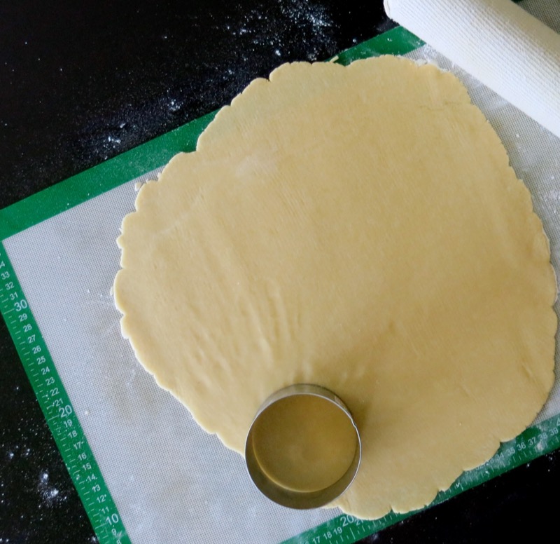 - Roll out dough on lightly floured surface to 1/16th inch or 2 millimeters thickness; cut 24 large rounds and 12 small rounds or tart lids