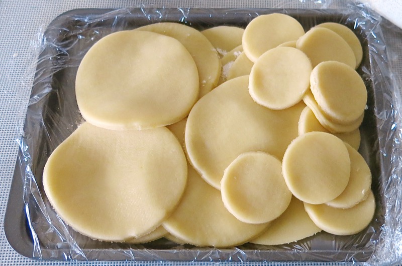 - Reroll dough as necessary to get 24 large rounds and 12 lids; cover with plastic and clean work surface