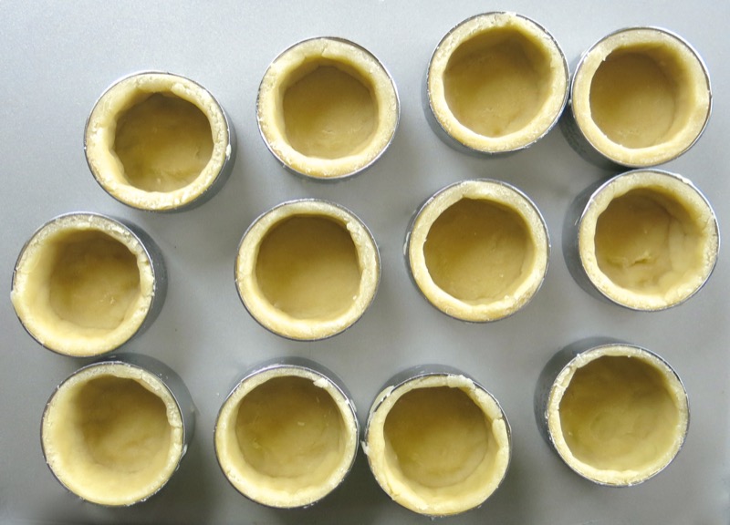 - Place other 12 open miniature French Tart shells on another parchment covered cookie sheet Follow Blind Baking French Tart Shell Instructions here.