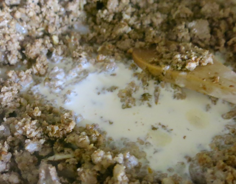I took the other half of that same filling and added dried porcini mushrooms and cream to it for the filling of the open miniature meat pies. I buy my dried porcinis when I go to Italy, but you can get them at your local Italian grocer. I used an ounce, whizzed them in my Thermomix until the were dust, and added them into the meat with a generous glug-glug of heavy cream.
