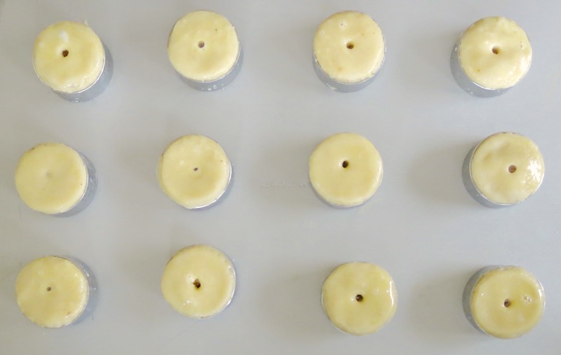 Pastry ready. Jacqueline had told me that getting the pastry into the rings was finicky. When I first started, I almost regretted buying them, but persevered, and then developed a process than worked rather seamlessly.