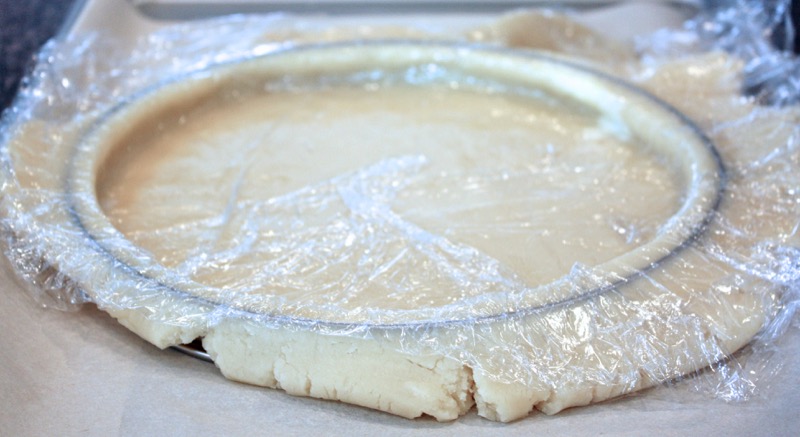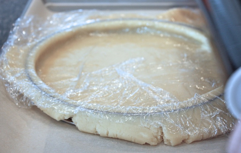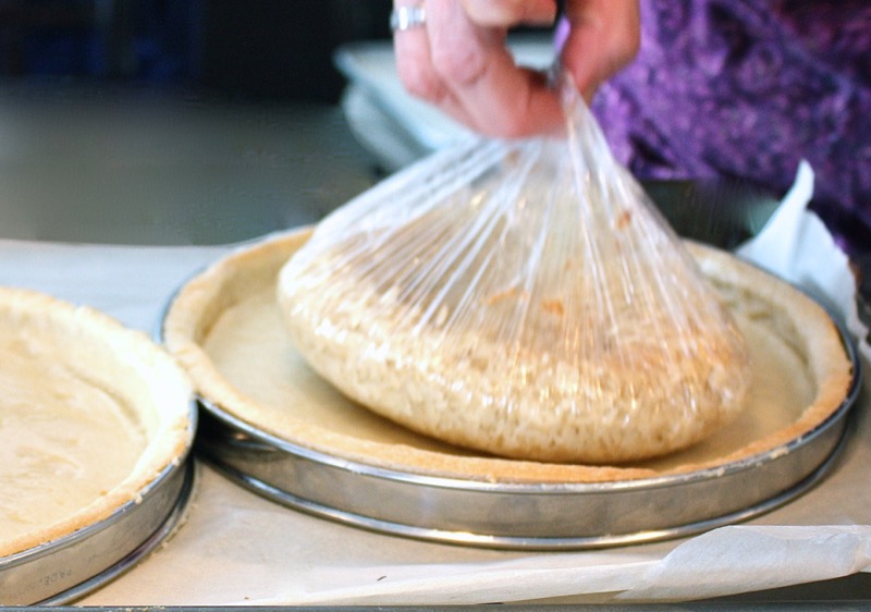 Rice or beans are placed into the cavity, covered with the wrap, and into the oven it goes for the par-bake. When time is up and crust is checked for stability, the plastic and beans or rice is removed and the crust is ready to fill.