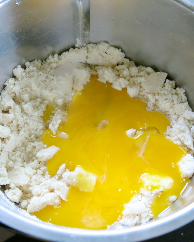 - Whisk egg yolk together with water; pour into TM bowl and combine for 2 seconds on Turbo one time (ingredients should be completely incorporated into small balls of pastry)