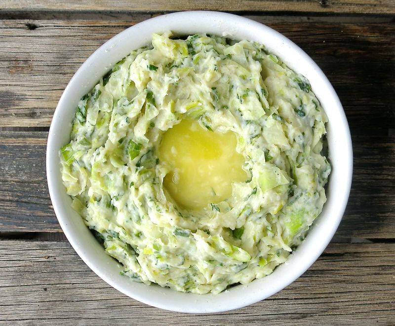 Season and add butter at this point, as needed. It is tasty with very little butter if properly seasoned. It is knock-your-socks-off deadly delicious roll-your-eyes-back-into-your head and happy-to die-in-Irish-heaven good with lots of butter. That is how it is expected to be served in an Irish home.