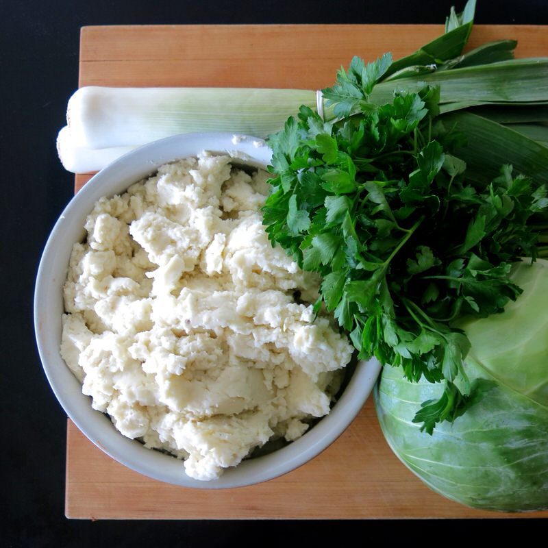 Irish Colcannon: Mis en Place with Mashed Potatoes