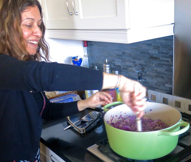 Braised Purple Cabbage: Sauteing the Aromatics
