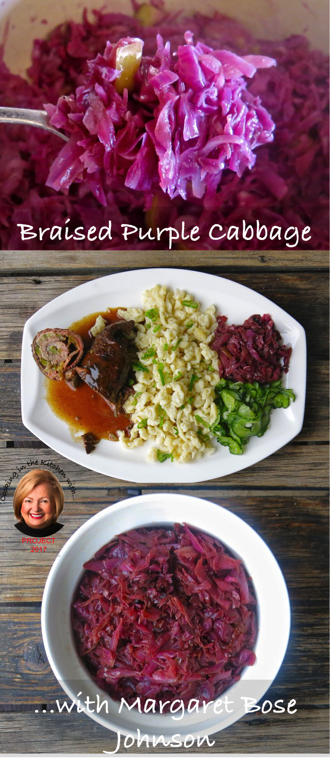 Braised Purple Cabbage! You’ll likely love it or not. Rotkohl means red cabbage and Blaukraut means blue cabbage. This dish can be called either, depending upon the region in Germany. I call it scrumptious. I have made it years ago, only once, to go with duck confit. I find it perfect for that dish, or any wild game, as well. It is a little sweet and tangy, yet a bold savory dish.