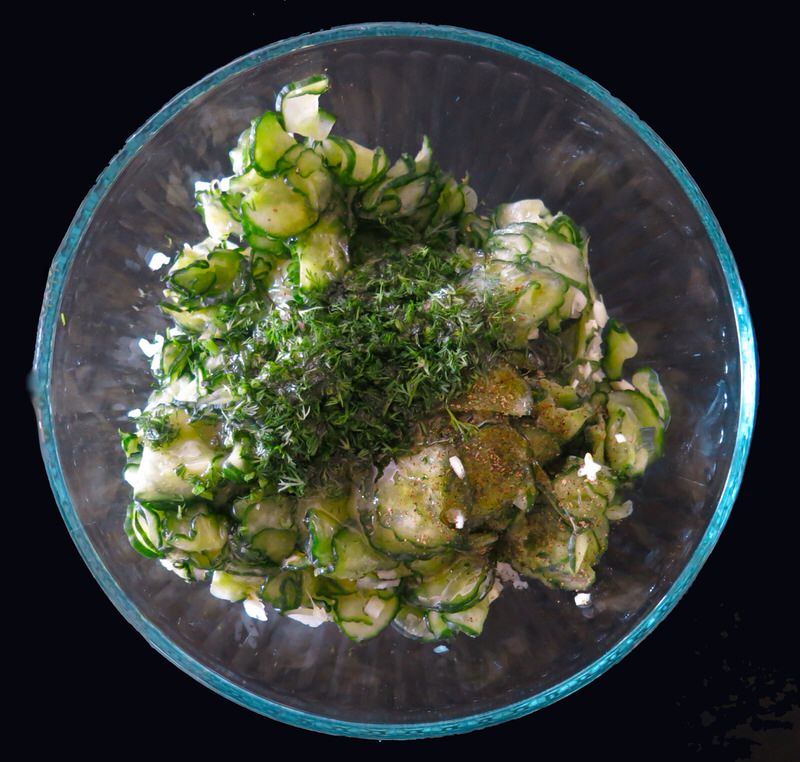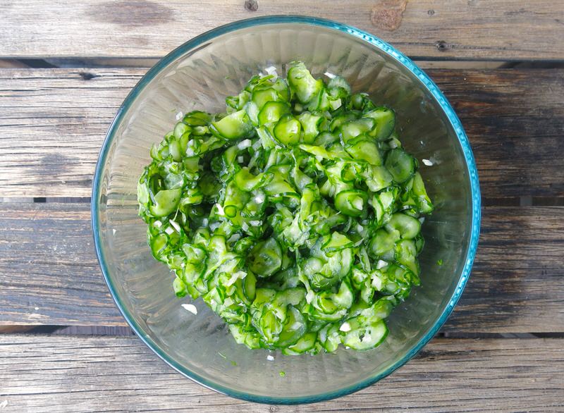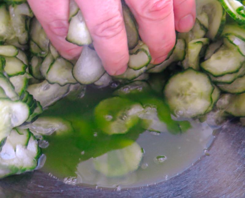 Cucumber Dill Salad or Gurkensalat: Expelling the Liquid from the Cucumbers