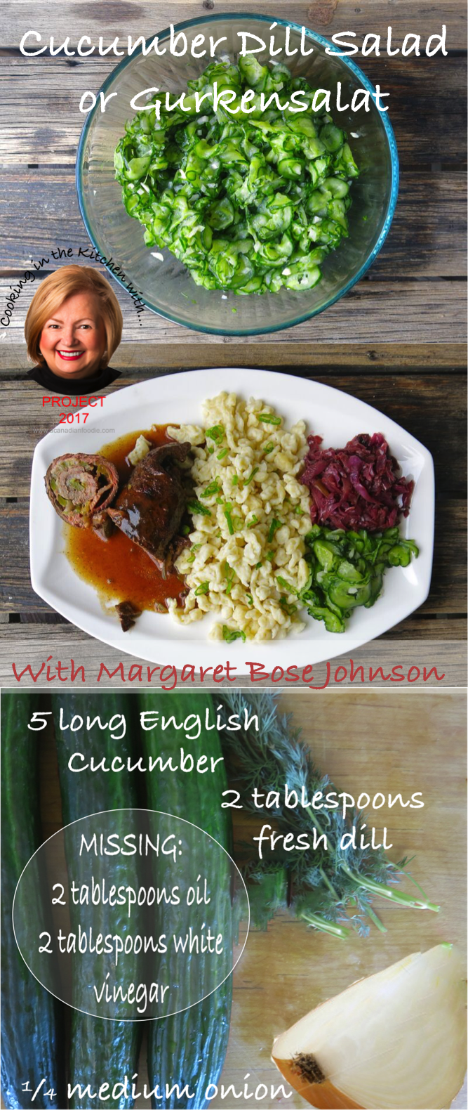 Cooking in the Kitchen with Margaret Bose-Johnson: Cooking in the Kitchen with Margaret Bose-Johnson: German Cucumber Dill Salad or Gurkensalat accompanies the traditional Fleisch Rouladen meal. Crunchy fresh!