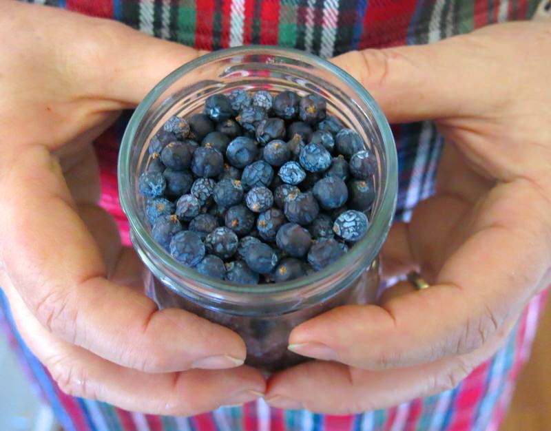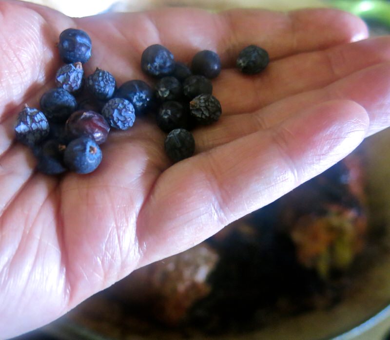 Juniper berries and bay leaves: less berries if not foraged, like Margaret’s above.