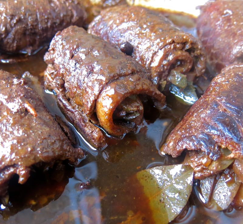 Glistening rolls of scrumptious homemade German Fleisch Rouladen. The Bose Johnson Christmas Eve main dish here to be shared with all.