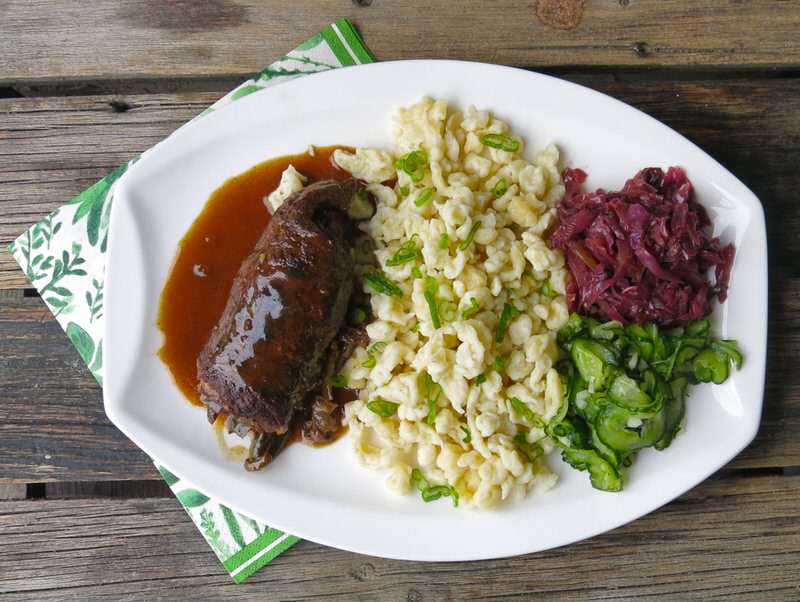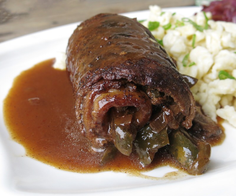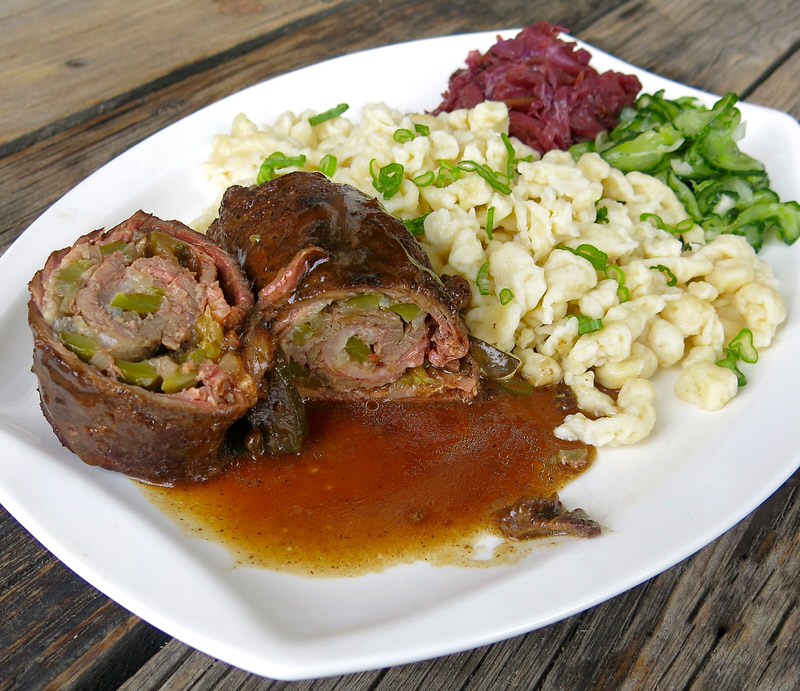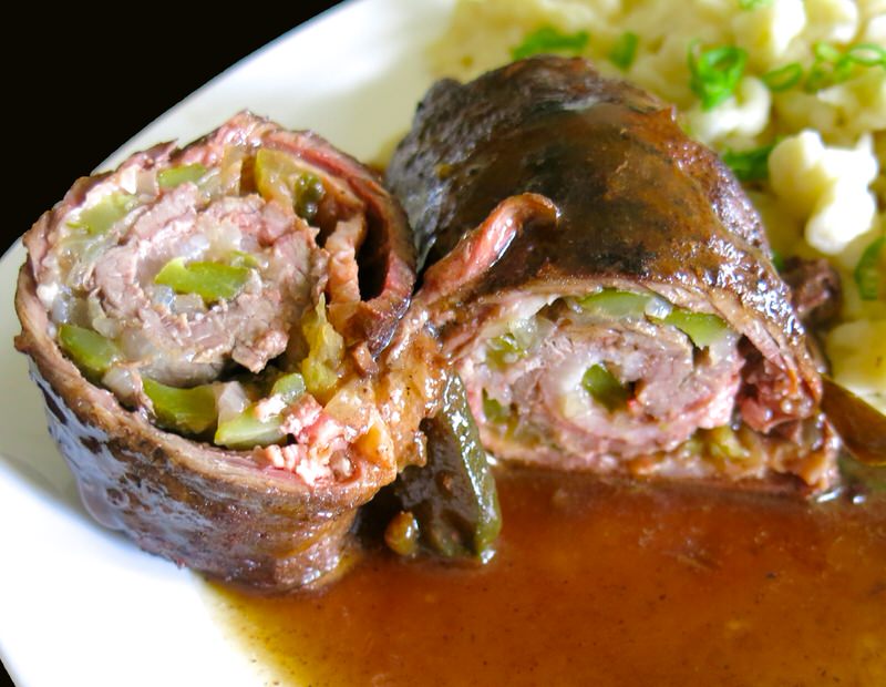 - Serve gravy over rouladen and on side with mashed potatoes, or spätzle, and a side of Braised Red Cabbage and a crispy cucumber salad.