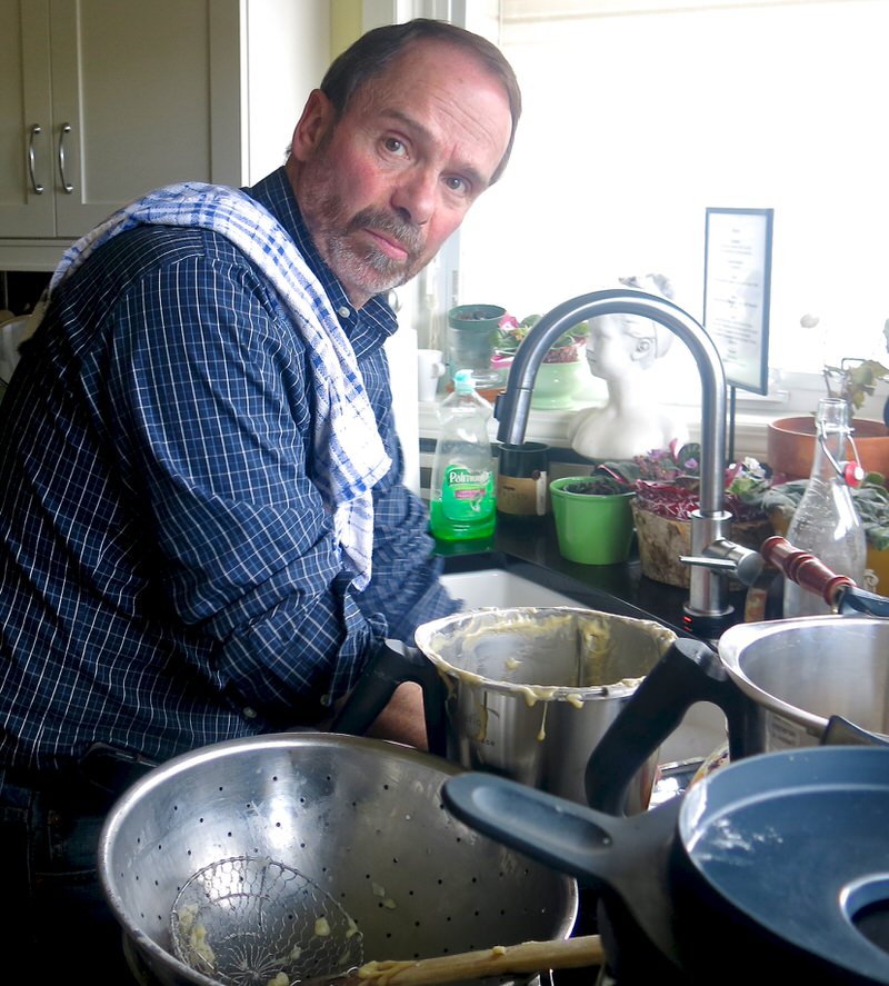 Raymond washing after the rouladen. Spaetzle dishes everywhere, and more, more, more to come.