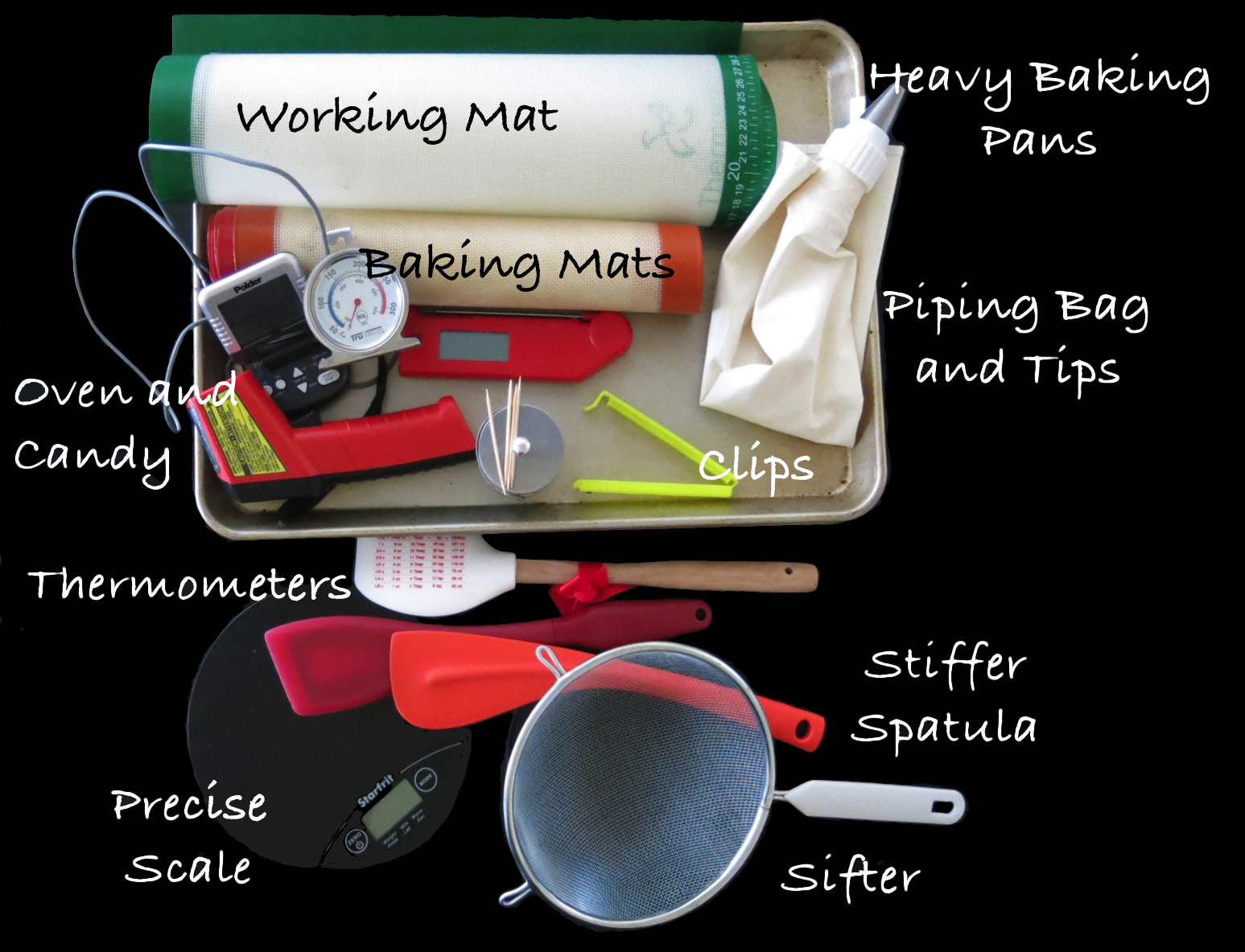 To invest or not to invest? Now, that is a serious question. How far gone are you? Are you ga-ga over the French Macaron. Is your passion and determination going to whisk you over the finish line? Because, even with these very specific instructions that will, I promise you, lead to your success. If you haven’t begun your French Macaron journey yet, you will face failure square in the eye more than a couple of times. Unless, well – you are just the lucky sort. It is the oven temperature and time that will be the last dragon to slay in this quest. You will already need all of the above. Well, not all of it, but one of each and four trays. As a prolific cook and baker myself, I have once again found myself in the position to make an investment decision. Should I buy new and heavier trays, or risk failure first? I definitely need a stiffer spatula for folding at the Macaronage phase and I need a scale that weighs to the gram. Fortunately, for me, I have the: