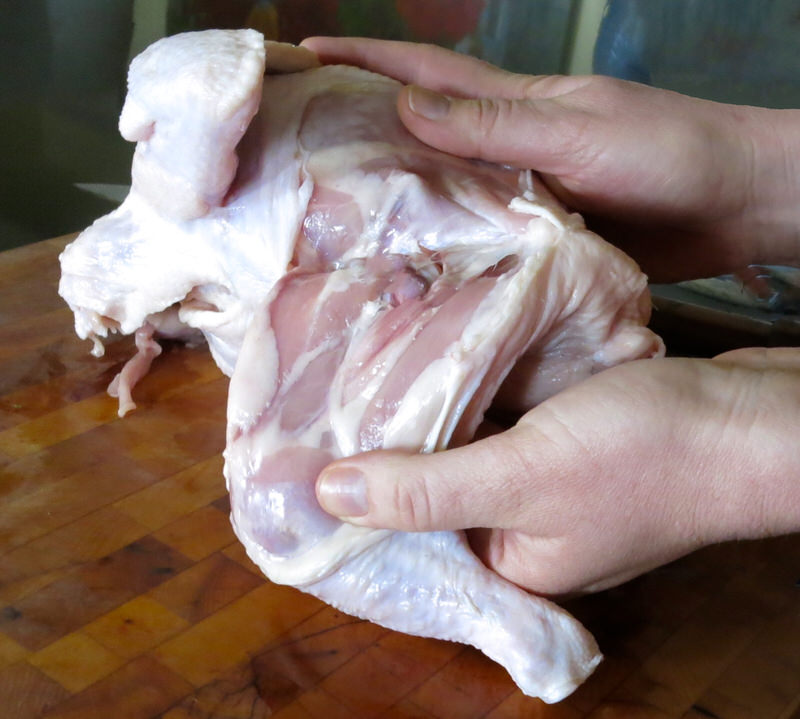 Elyse clearly demonstrates this process. Be prepared to remove the legs of your chicken at the same time.