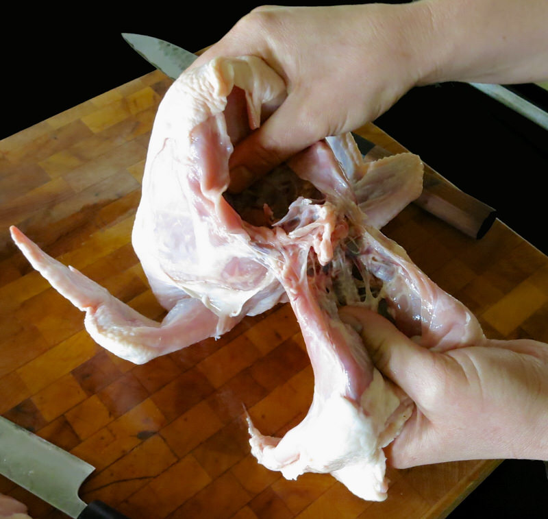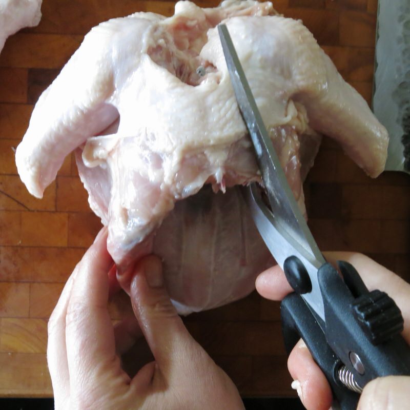 Elyse clearly demonstrates this process. Be prepared to remove the backbone and split the breast of your chicken at the same time.