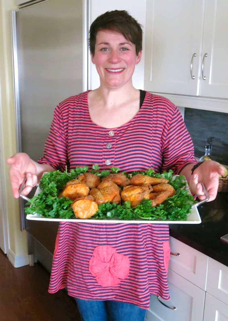 What a great post, Valerie! You must have had a fun afternoon. I loved seeing how Elyse cuts up her chicken – totally different from how I’ve always done it, but now I want to try her way – it looks so neat and easy – love the chicken supremes way of doing the wings. The wings usually get ignored on the plate when they are separate. Thanks for all the info – and the oven-fried chicken on a rack is a great trick.