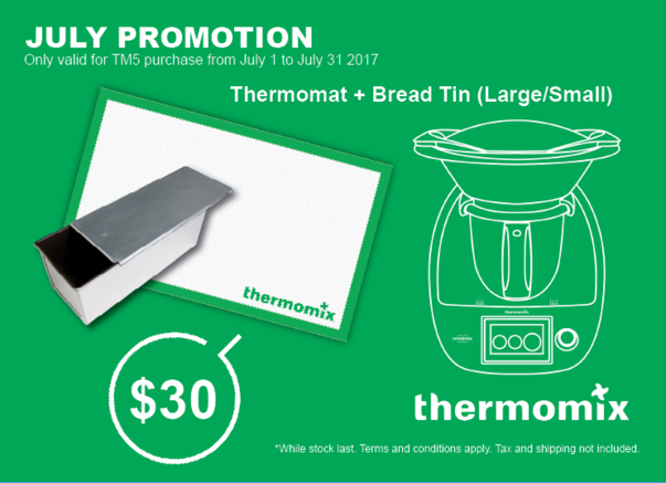 Thermomix TM5 Incentives: Buy a TM5 in July 2017 and add $30* for a Baking Bundle (bread tin and ThermoMat).