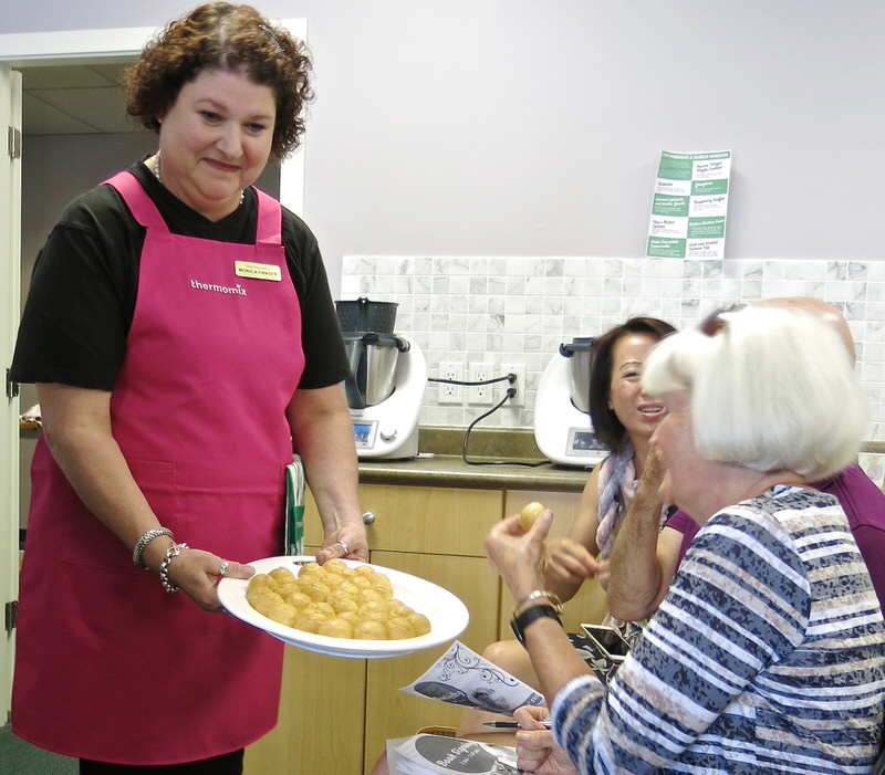 Look at the glorious rise on those dainty ditties! Oh my. Oh me – oh my. All rose for the grand finale around the presentation island and dug into these communally, “mmmmming” and “yumming” in quiet ceremony, like a religious Alm: our community AMEN to this delicious experience Nico Moretti had guided us through. Thank you, Nico. Thank you, Thermomix Canada, and Thank you to my Consulting friends who made the day happen by assisting in Nico’s Kitchen.