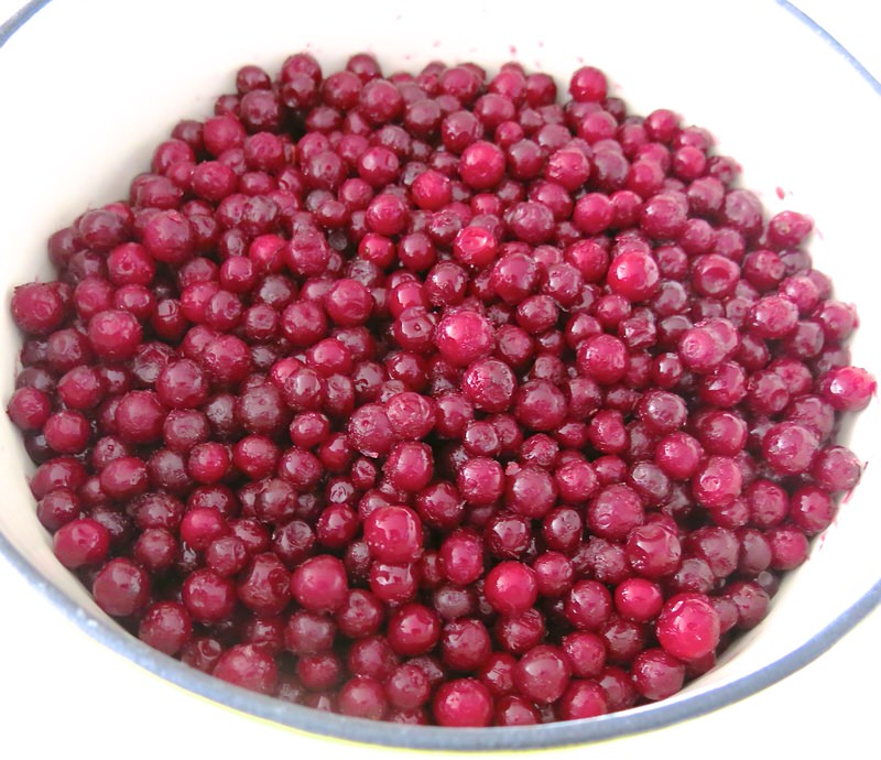 First, thank you so very much to Sander, from Newfoundsander: Life in Newfoundland for sending me his Partridgeberry picking photos. It is not easy to find any images of the plant to see how it grows. I found a small photo on his site, but fortunately, he had more. Above, berries he has plucked by hand. Below, the berries sitting low to the ground near the bushes the berries were just harvested from. Though ripe in September, there is a Partridgeberry or Lingonberry Fruitworm that infects the fruit, and the locals “theoretically” wait until the worm dies from the cold of the first frost. usually around the 12th of September every year. However, there are some local rebels, present company included, who venture forth to get their bounty before the “Official Government Announcement” that it is now “safe to pick the Partridgeberries”. Yes, there is even a government Partridgeberry picking announcement. These berries are as special to Newfoundland as the Saskatoon Berry is to the Canadian prairies sans government guidance. “They are not easy to pick, either,” Joy adds. You can’t shake them off on a blanket the way we pick blueberries. Like the blueberry, they grow low to the ground, but in marshy bogs and must be individually plucked off the branch. Different from picking Saskatoon berries as they are easily released in clusters from the branch and not backbreaking. Berry picking, no matter level of difficulty, is always a labour of love. The Partridgeberry, this jam, the regional Canadian food traditions within Emily’s Newfoundland family, are most definitely steeped in love.